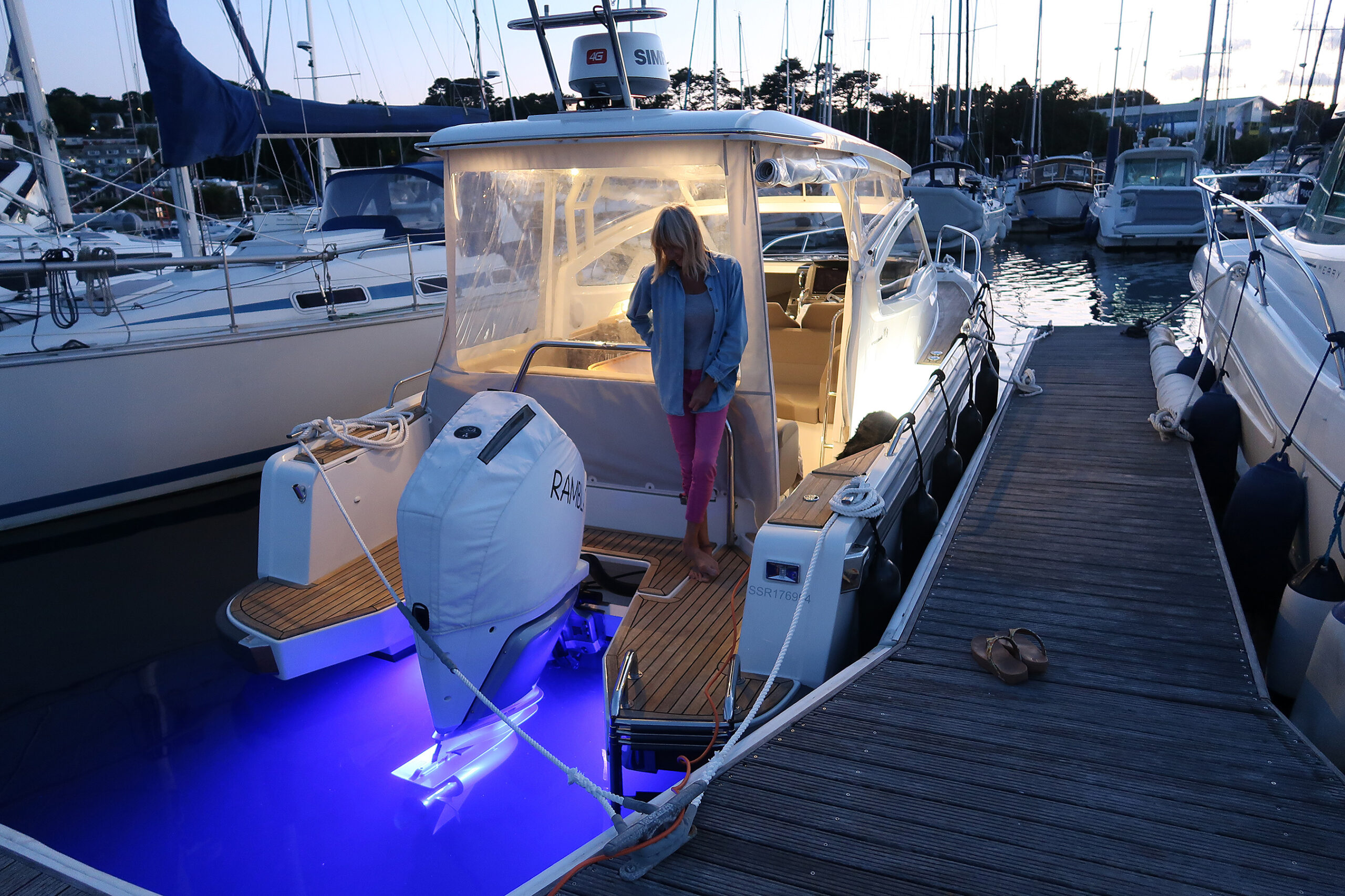 The boat is berthed at Falmouth Marina and all the marina facilities are available, such as Restaurant, Bar, Showers and Toilets. A lovely place to start and end your day with Powerboat Charters.