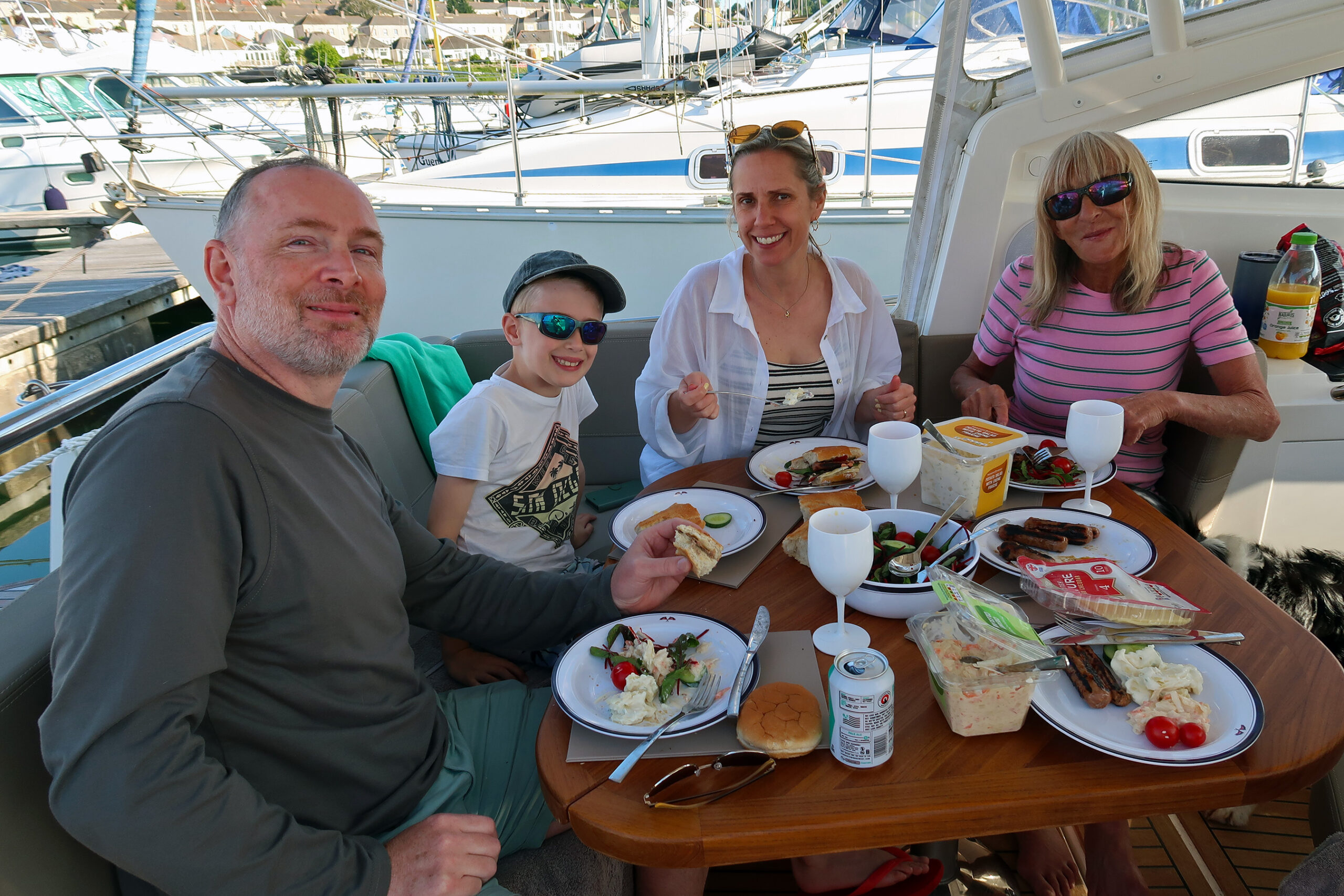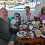 We can take up to 8 guests, but fewer would be more comfortable, especially if you are eating on board.