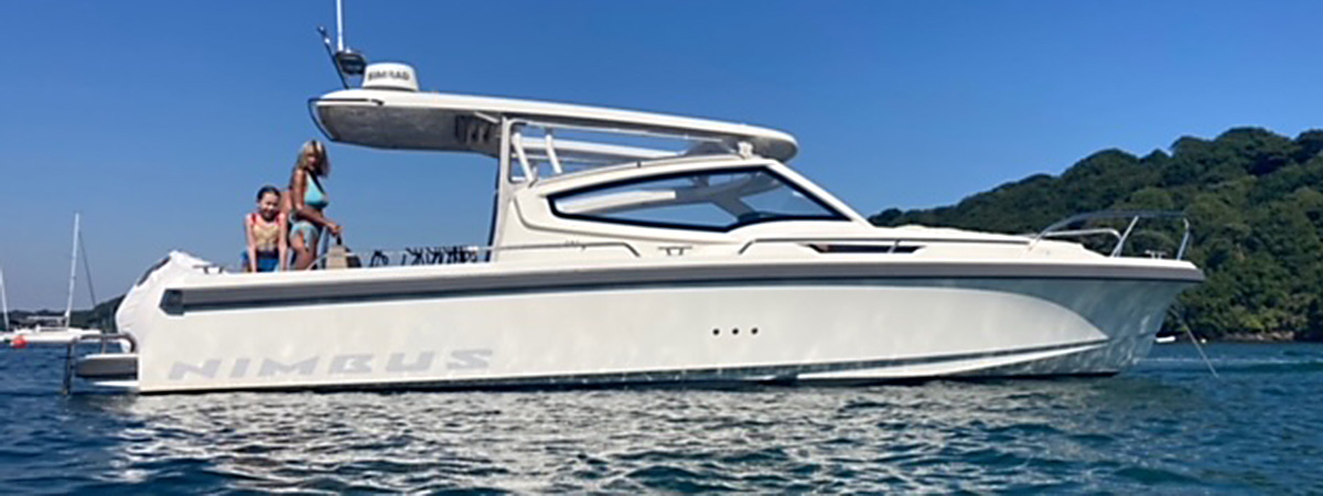 Charter our Nimbus W9 with a 300 hp V8 Mercury Verado, giving speeds up to 40 knots.